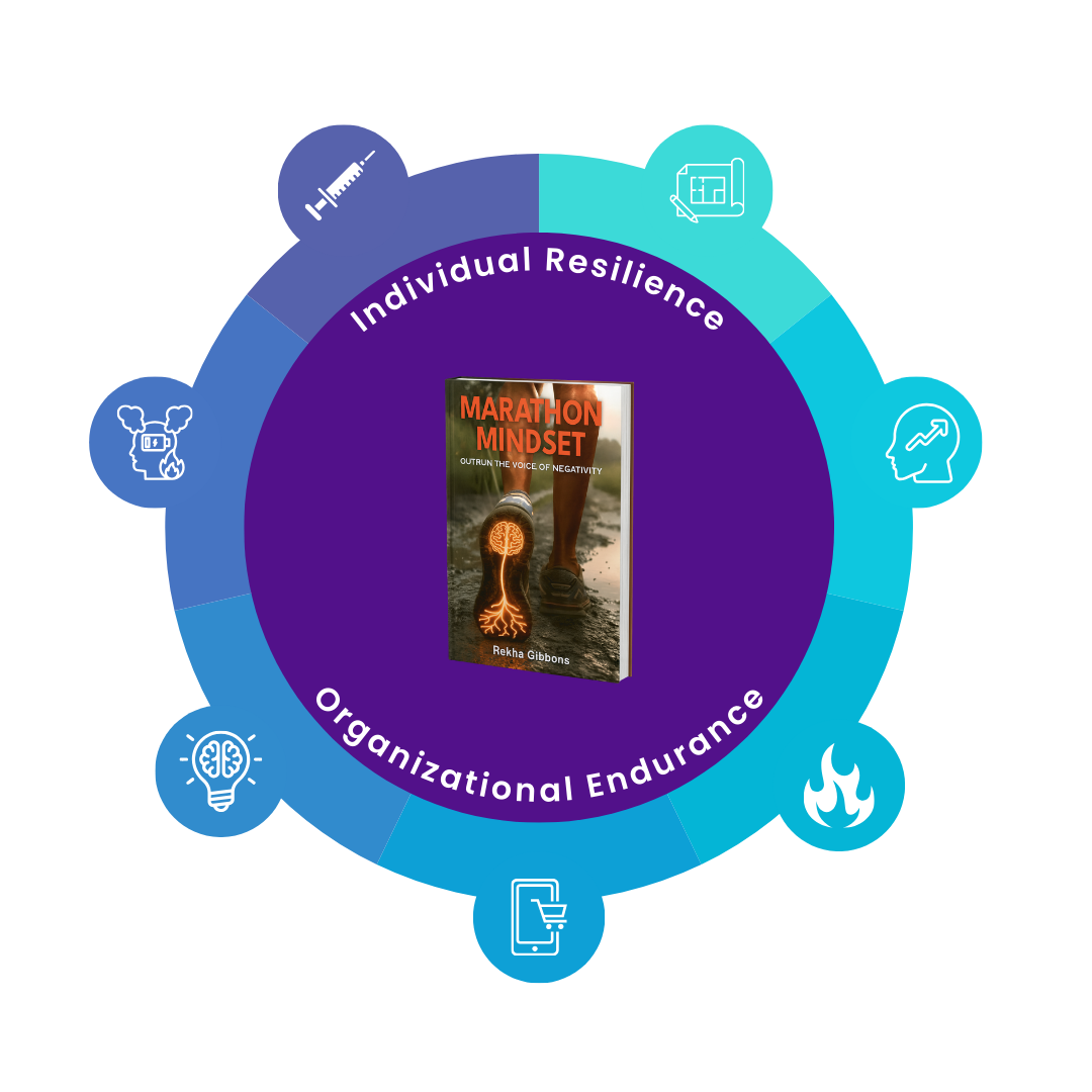 She has synthesized her background in Industrial Psychology (Cum Laude, University of Maryland) with 4 decades in Corporate America, and intense study of the masters of professional and personal success. Rekha proves that resilience isn't just a trait; it’s an operational framework which she now shares in her 3x bestselling book Marathon Mindset: Outrun the Voice of Negativity.